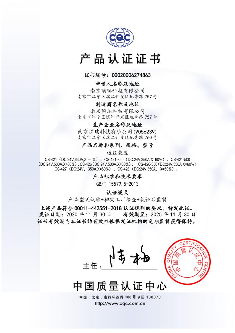 3C证书 (送丝装置 CS-401Y 24V 系列)